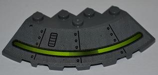 Brick, Round Corner 6 x 6 with Slope 33 Edge, Facet Cutout with Alien Ship Dark Gray Pattern (Sticker) - Set 7052
