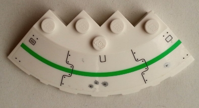 Brick, Round Corner 6 x 6 with Slope 33 Edge, Facet Cutout with Bright Green Stripe, Vent Grilles and Bullet Holes Pattern Model Left Side (Sticker) - Set 70704