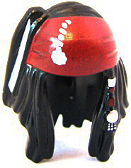 Minifigure, Hair Dreadlocks with Beads and Dark Red Bandana Pattern