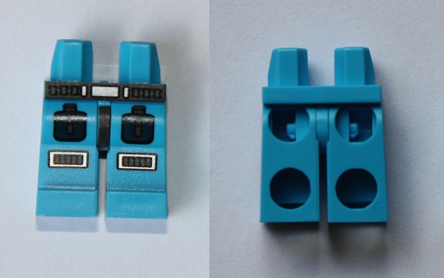 Hips and Legs with Dark Bluish Gray Belt with Silver Buckle, Dark Blue Pockets, Knee Pads Pattern