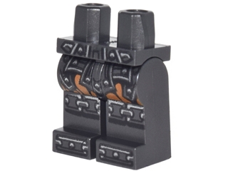 Hips and Legs with Metallic Silver Armor with Rivets, Dark Orange Fabric, Chain Mail on Knees and Boots Pattern