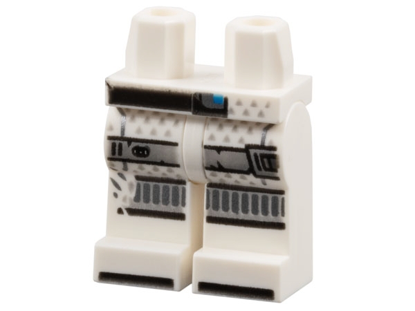 Hips and Legs with Black Belt and Shoe Tips, Light Bluish Gray Thigh Straps with Buckle, Knee Armor, and Damaged Right Leg Pattern