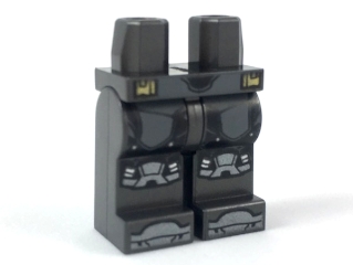 Hips and Legs with Dark Bluish Gray, Black, and Silver Armor, Gold Trim Pattern