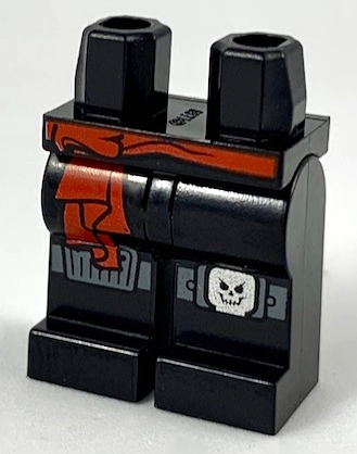 Hips and Legs with Red Sash, Dark Bluish Gray Knee Pads, Silver Skull on Left Knee Pattern