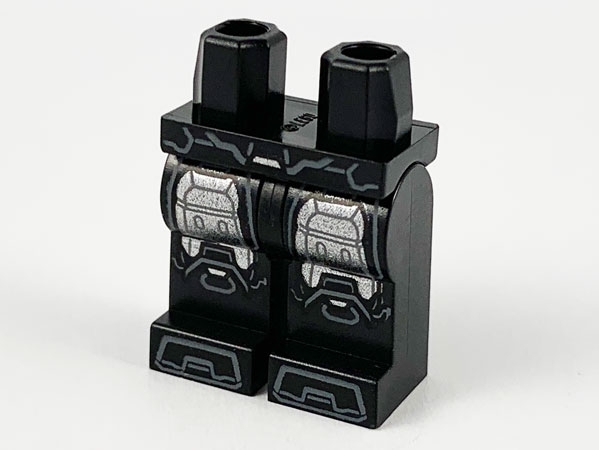 Hips and Legs with Large Silver Armor Plates, Dark Bluish Gray Belt and Toe Outlines Pattern