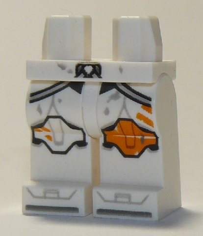 Hips and Legs with SW Clone Trooper and Orange Left Knee Pad, Two Stripes and Light Bluish Gray Diagonal Belts Pattern