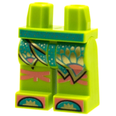 Hips and Legs with Dark Turquoise Leaves Skirt, Gold Trim, Coral Knee Wrappings Pattern