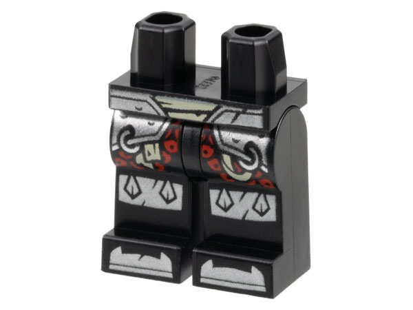 Hips and Legs with Tan Belt, Silver Armor and Knee Pads, Red Circles Pattern