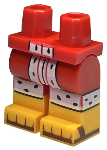 Hips and Legs with Molded Bright Light Orange Lower Legs / Boots and Printed White Coat Trim with Black Spots, Reddish Brown Sandals and Toes Pattern
