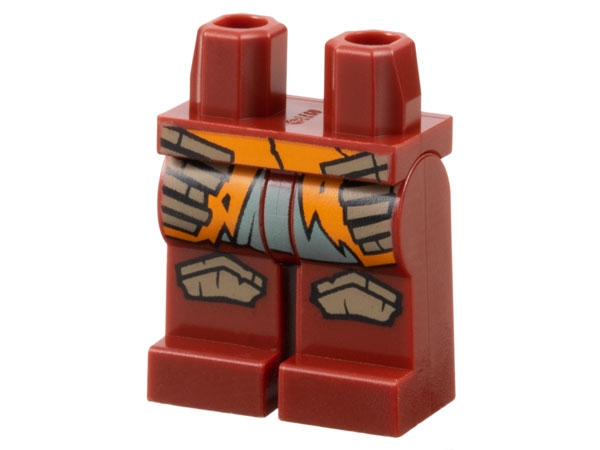 Hips and Legs with Orange Tattered Skirt over Sand Green Robe Bottom, Dark Tan Knee Pads Pattern