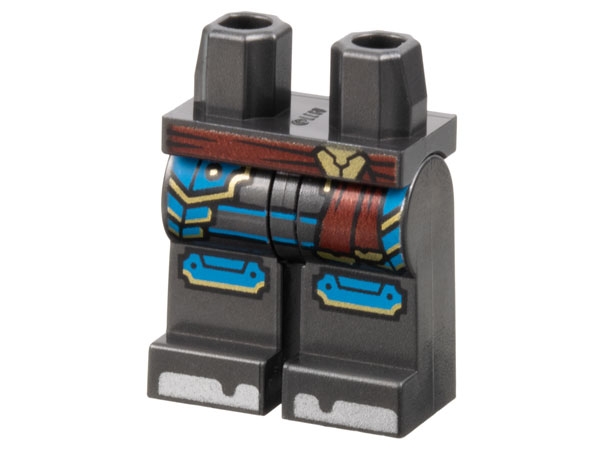Hips and Legs with Dark Red Sash, Dark Azure Armor Plates and Knee Pads, Silver Toes, Gold Trim Pattern