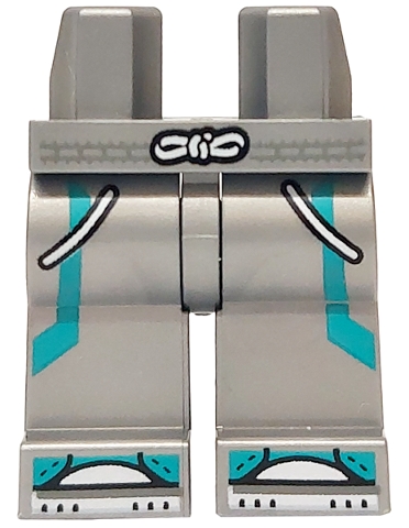 Hips and Legs with Dark Turquoise Stripes and Shoes with Stitching, Black and White Tied Belt, Pockets and Soles Pattern