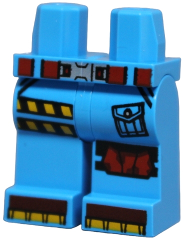 Hips and Legs with Red Belt with Silver Buckle, Pocket and Red Knee Pad Left, Black and Yellow Danger Stripes Right, Dark Red and Bright Light Orange Toes Pattern