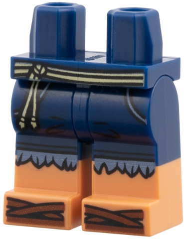 Hips and Legs with Molded Nougat Lower Legs / Boots and Printed Tan Rope Belt, Sand Blue Cutoff Fringe, Reddish Brown Sandals Pattern