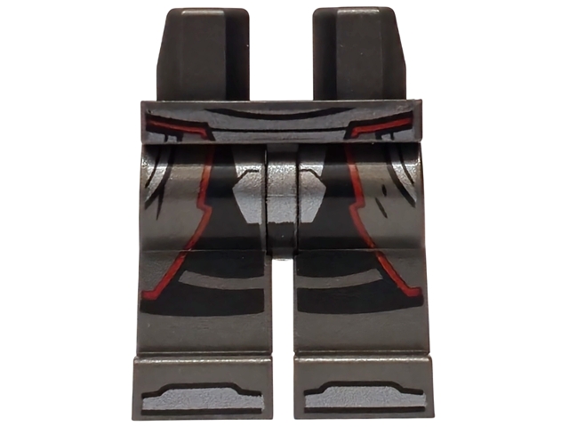 Hips and Legs with SW Mandalorian Silver Armor Plates and Toes, Black Panels with Dark Red Trim Pattern