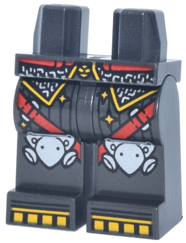 Hips and Legs with Red Diagonal Straps, Bright Light Orange Trim and Boot Tips, Silver Chain Mail and Knee Pads Pattern