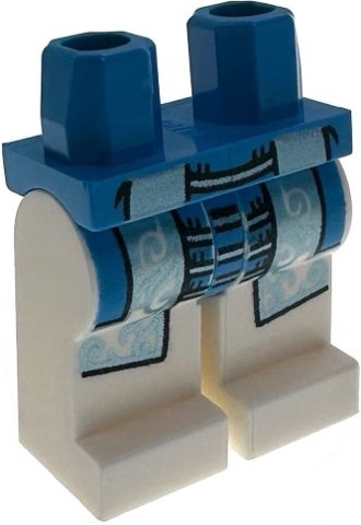 Hips and White Legs with Metallic Light Blue Robe Ends with Swirls and Black Outline Pattern
