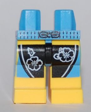 Hips and Yellow Legs with Black and Medium Blue Board Shorts with Flowers Pattern