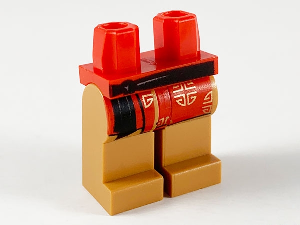 Hips and Medium Nougat Legs with Black Tied Sash, Red Robe End with Gold Circle Symbols Pattern