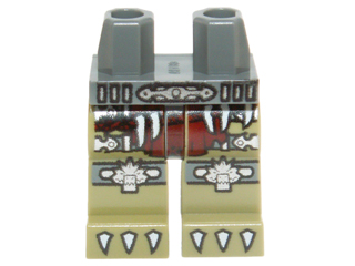 Hips and Olive Green Legs with Dark Red Loincloth, Silver Crocodile Knee Pads and White Claws Pattern