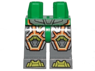 Hips and Dark Bluish Gray Legs with Lime Armor and Orange and Yellow Circuitry, Lime Hexagonal Knee Pads and Lime Boots Pattern