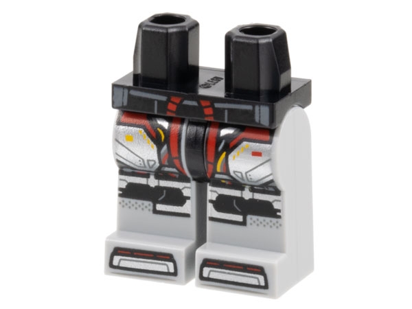 Hips and Light Bluish Gray Legs with Silver Armor, Black Knee Pads, Dark Red Stripes, Yellow Trim Pattern