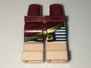 Hips and 1 White Left Leg, 1 Dark Red Right Leg with Molded Light Nougat Lower Legs / Boots and Printed Skirt and Loin Cloth with Gold Trim over Shorts with Black Stripes Pattern
