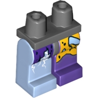 Hips and 1 Dark Purple Left Leg, 1 Bright Light Blue Right Leg with Tattered Orange and Purple Leggings and Boot Pattern