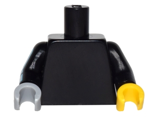 Torso Plain / Black Arm Left / Black Arm Right with Silver Mechanical Pattern / Yellow Hand Left / Light Bluish Gray Hand Right