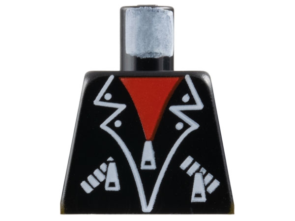 Torso Leather Jacket with White Lapel Outlines, Pockets and Zippers over Red Shirt Pattern