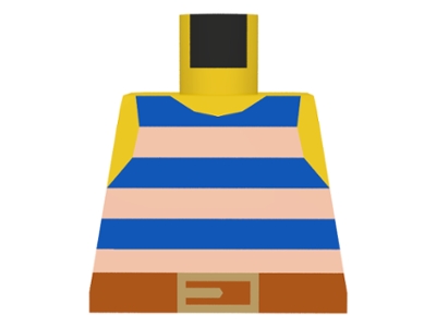 Torso Pirate Tank Top with Blue and White Horizontal Stripes, Dark Orange Belt with Gold Buckle Pattern