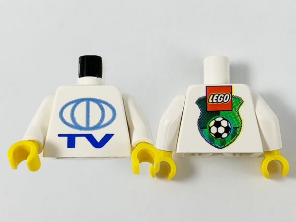 Torso TV Globe Big Pattern - LEGO Soccer Logo on Back / White Arms / Yellow Hands