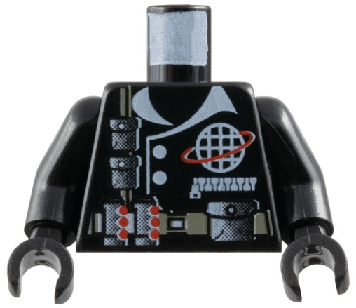 Torso Jacket with White Buttons, Pocket with Zipper, Collar, and Alpha Team Wire Frame Globe Logo, Dark Gray Utility Belt and Strap with Pouches Pattern / Black Arms / Black Hands