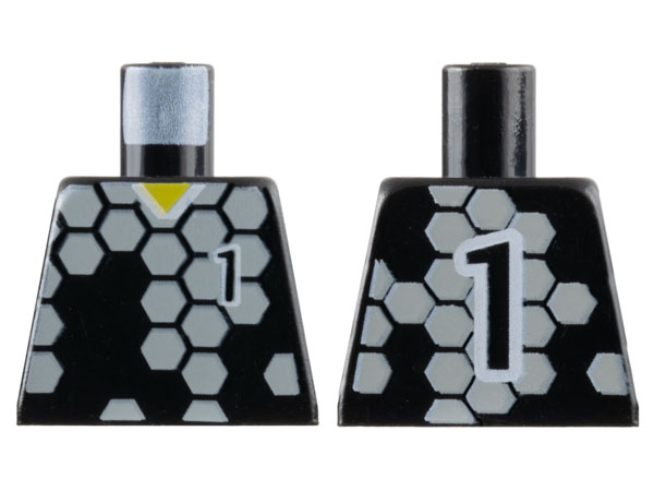 Torso Soccer Uniform Shirt with Light Gray Hexagons, Number 1, Yellow Neck Pattern