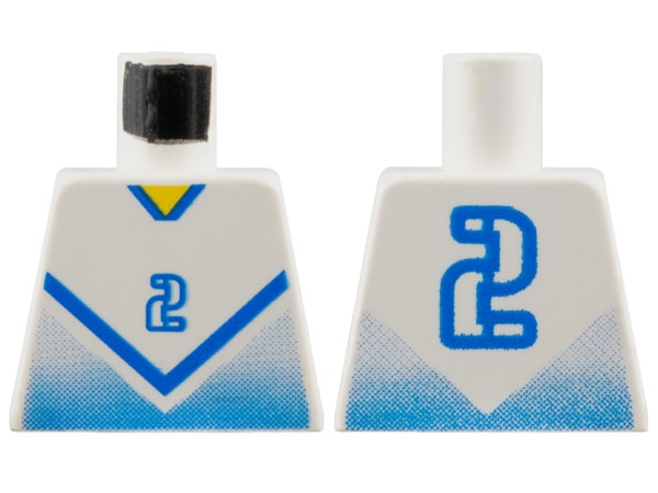 Torso Soccer Jersey Shirt with Blue Chevron and Number 2, Yellow Neck Pattern