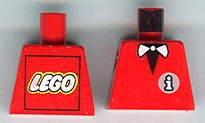 Torso Vest with White Lowercase Letter i on Light Gray Circle Infomaniac Logo over Black Shirt, Bow Tie, LEGO Logo on Back Pattern