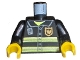 Torso Fire Uniform Gold Badge, Silver Reflective Stripes, Dark Bluish Gray Radio Pattern / Black Arms / Yellow Hands