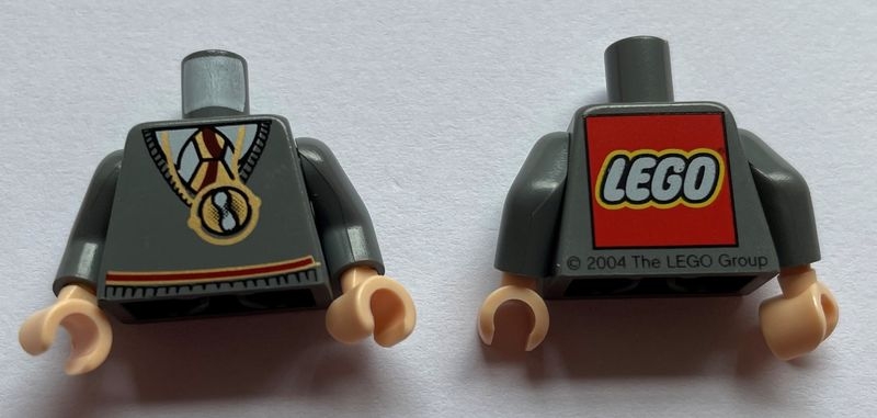 Torso Harry Potter Sweater and Tie Gryffindor Colors with Pendant Necklace Pattern / Dark Bluish Gray Arms / Light Nougat Hands / LEGO logo on Back