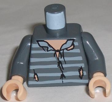 Torso Harry Potter Sirius Tattered Striped Shirt Pattern / Dark Bluish Gray Arms / Light Nougat Hands
