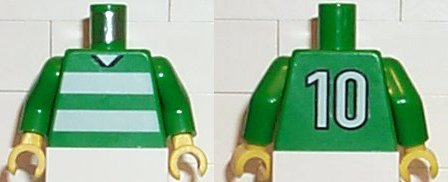 Torso Soccer Uniform Shirt with White Horizontal Stripes, Neck, and Number 10 on Back Pattern / Green Arms / Yellow Hands