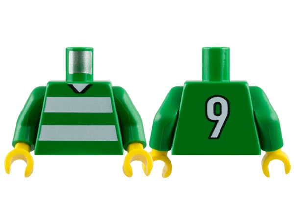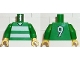 Torso Soccer Uniform Shirt with White Horizontal Stripes, Neck, and Number 9 on Back Pattern / Green Arms / Yellow Hands