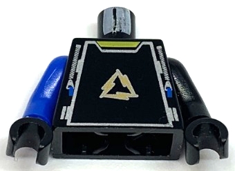 Torso Alpha Team Arctic Uniform with Copper Lightning Bolts in Triangle Logo and Silver Zippers with Blue Tabs, Yellow Neck Pattern / Black Arm Left / Blue Arm Right / Black Hands