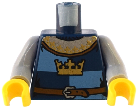 Torso Castle Fantasy Era Gold Crown and Reddish Brown Belt with Silver Buckle on Medium Blue and Dark Blue Quarters Pattern / Light Bluish Gray Arms / Yellow Hands