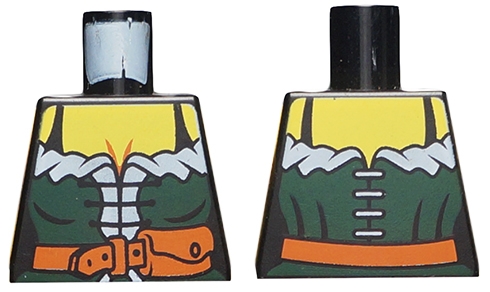 Torso Female Pirate Dark Green Corset with White Trim, Dark Orange Belt with Pouch, Yellow Chest Pattern