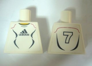 Torso Soccer Uniform White Shirt with Black Adidas Logo, Curved Lines and Number 7 on Back, Yellow Neck Pattern (Stickers)
