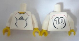 Torso Soccer Uniform White Shirt with Black Adidas Logo, Curved Lines and Number 10 on Back, Yellow Neck Pattern (Stickers) / White Arms / Yellow Hands