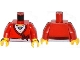 Torso Sweater Cropped with Dark Red Bow and Trim over White Shirt with Bright Light Orange Stars, Silver Heart Pendant Necklace, Yellow Neck Pattern / Red Arms / Yellow Hands