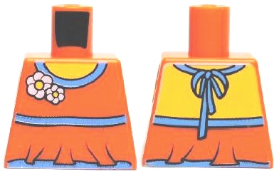 Torso Halter Top with Medium Blue Trim and Flowers, Yellow Neck Pattern