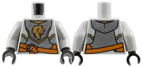 Torso Castle Kingdoms Armor Breastplate with Gold Lion Head, Belt Front and Back Pattern / Light Bluish Gray Arms / Dark Bluish Gray Hands