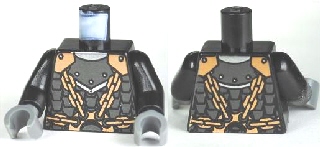 Torso Castle Kingdoms Scale Mail, Copper Shoulder Armor and Chains Front and Back Pattern / Black Arms / Dark Bluish Gray Hands